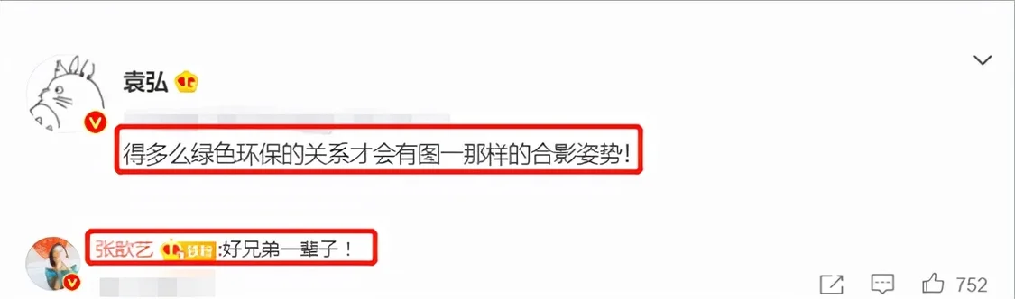 两个人微博互动也很有趣,袁弘调侃说得多么绿色环保的关系才会有这样的合影姿势,张歆艺则直接表示好兄弟一辈子↓
