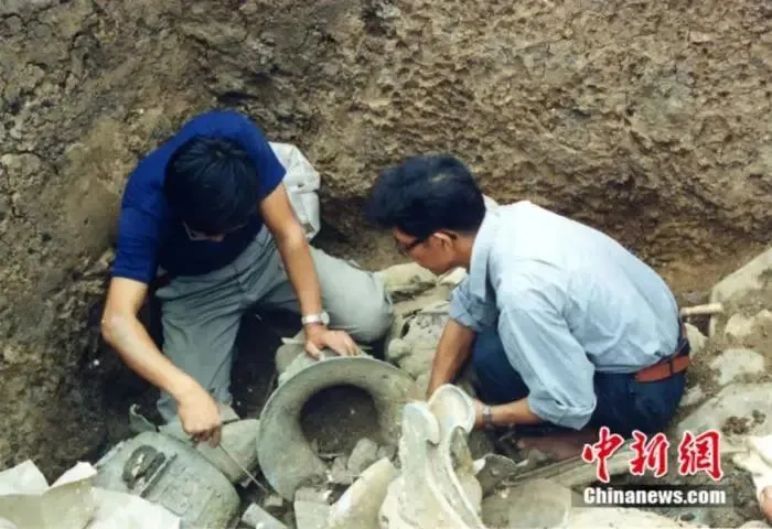 据发掘成果显示,三星堆古城几千件宝器被砸毁焚烧,并有规则地埋于地下。