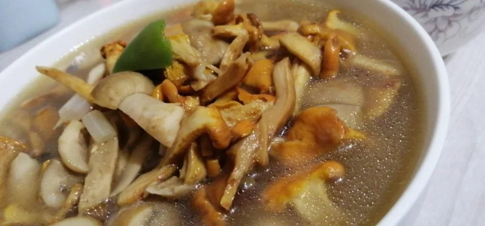 (青头菌、鸡油菌煲汤)