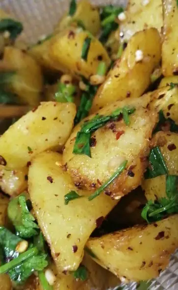 放了香菜小葱的麻辣炸洋芋