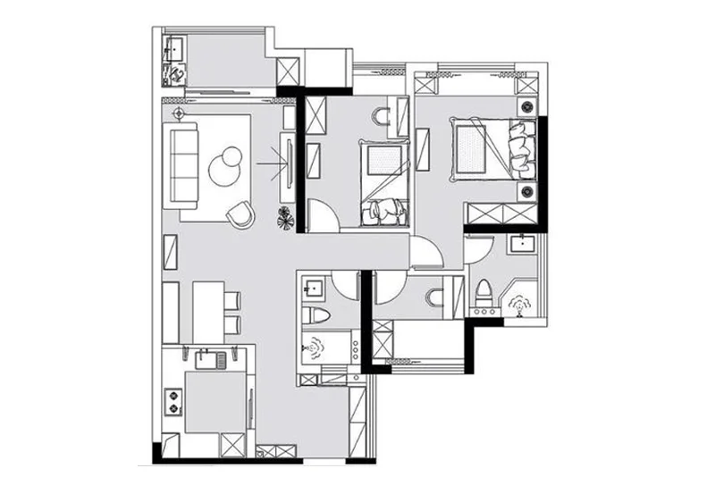 三居室的房子多大面积好5万元的北欧风格设计说明