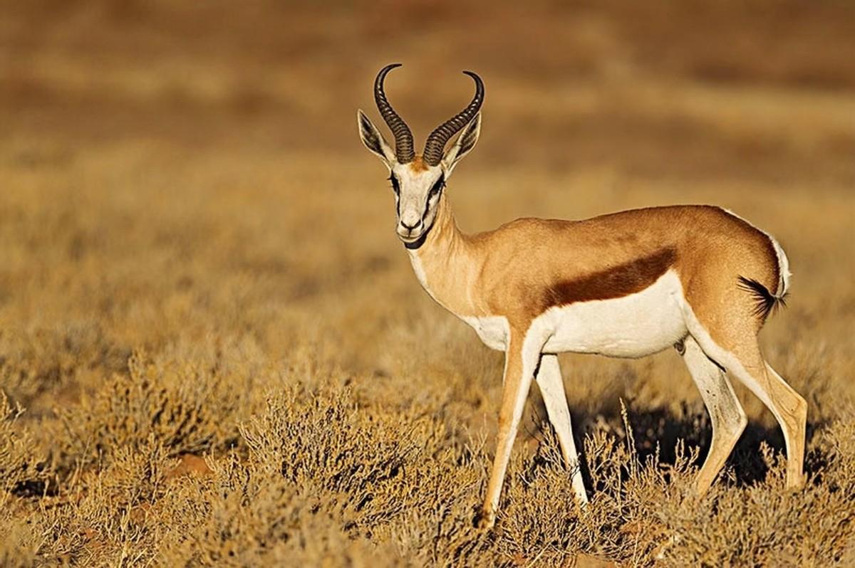 跳羚原产于南部非洲,可以在短时间内以 55 英里/小时(88 公里/小时)的速度运行。这种中型羚羊还以其机动能力而闻名,例如在被追逐时急转弯,并进行令人难以置信的长跳以甩掉猎豹等追逐者。