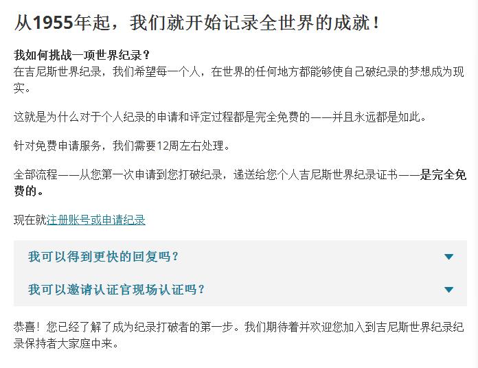 反正就是什么鬼都可以在官网申请认证,而认证的基础标准是:可比性、可以被打破性和趣味性。每个人都可以在吉尼斯世界纪录的官方网站上提出申请。