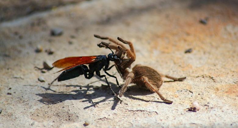 4分虽没到痛不欲生,也差不多了。子弹蚁(见上图)和狼蛛鹰蜂(下图)获得了最高的4分评价。