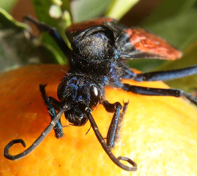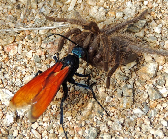 我们不会遇到子弹蚁,但国内,像狼蛛鹰蜂一样捕猎蜘蛛的蜂可有不少。它们是蛛蜂属(Pepsis)和半蛛蜂属(Hemipepsis )的物种,这些家伙能用混合神经毒去捕猎那些大号的蜘蛛喂养自己的小孩,毒性可想而知。