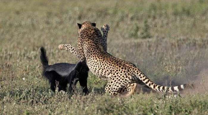 这种惊人的先天防御和进攻能力的结合,导致了蜜獾似乎没有什么让它们害怕的事情。它们天生的凶猛、好斗也导致少有捕食者愿意去攻击它们,通常那些捕食者都会敬而远之避开蜜獾而去,选择其他的动物。即使像狮子和豹子这样的猎食者也倾向于避开蜜獾,虽然据说有狮子和豹子杀死过蜜獾。但你要相信,人们曾无语的发现,有狮子攻击蜜獾最后反而被蜜獾杀死并吃掉,它们确实是无所畏惧的生物。