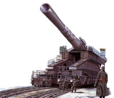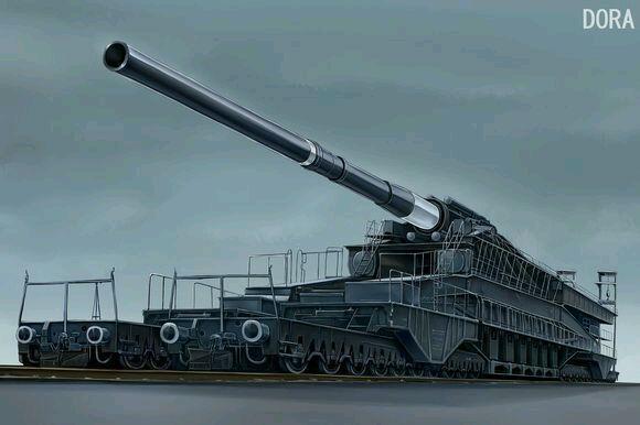 在第二次世界大战中的纳粹德国制造了一门骇人听闻的超级大炮----800毫米的“古斯塔夫”这门炮也算是前无古人后无来者的巨炮。当时克虏伯兵工厂建造完成后被用克虏伯家族的“古斯塔夫”前缀名命名,而后它以700万马克被军方购买,该型火炮的第二门则以工程师的妻子的名字命名叫做“多拉”。该型火炮在二战中只建造了两门,第三门炮还没建造完成战争就结束了。“古斯塔夫”巨炮这是有史以来曾经制造过的最大的大炮,包括运输车在内,它重达1344吨,整门大炮有4层楼高。