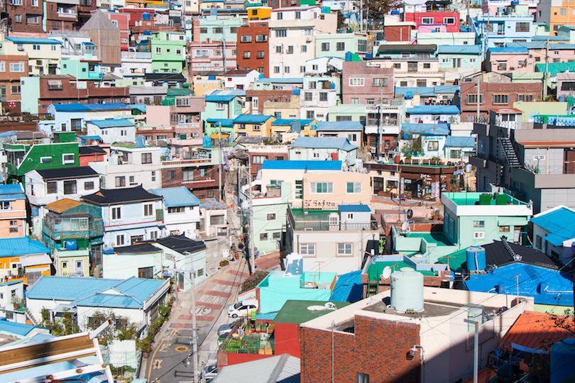 釜山的甘川文化村是一个色彩缤纷的梯田式房屋。在2009年之前,甘川是一个贫民窟; 这里曾经是朝鲜战争难民的家园。然而,各政府机构采取措施重新开发该地区作为旅游景点和艺术中心。因此,该市获得了美化其城镇的资金。艺术家涌向该地区,现在艺术生活在每个角落,无论是户外雕像还是街头艺术。今天,体验这座城市的最佳方式就是迷失在这座独特小镇的多彩小巷中。