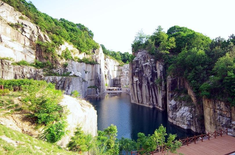 这个位于抱川市附近的地区曾经是一个不向公众开放的工作采石场。然而,在抱川的第一个环境修复项目中,采石场变成了一个美丽的公园。绿松石湖与岩石悬崖的绝面形成鲜明对比,每年有成千上万的游客参观。水边有一个户外舞台,艺术中心有时举办表演,每年举办许多活动,还有日常艺术工作坊。