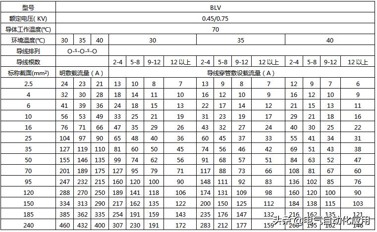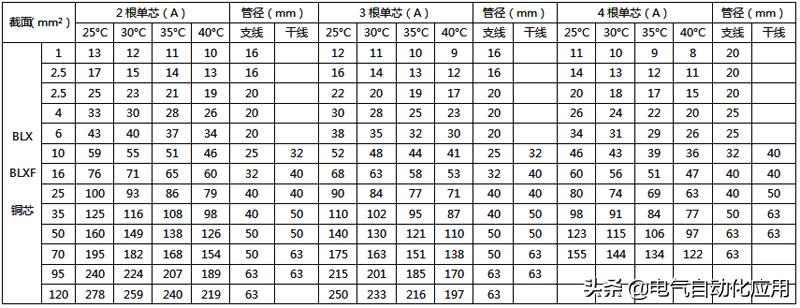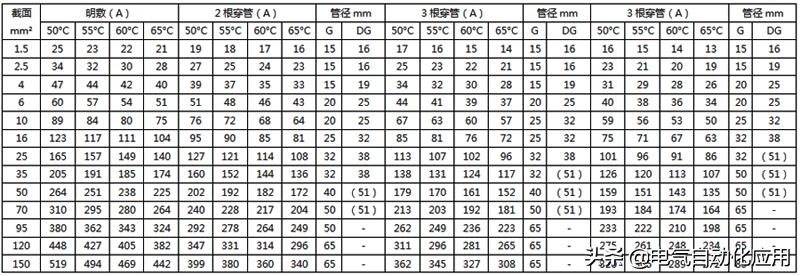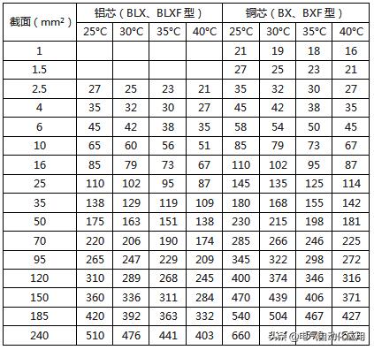 最全电线载流量对照表,老电工师傅多年精心收藏!