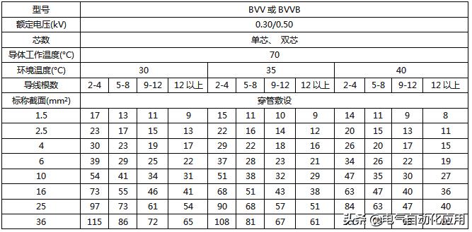BVV、BVVB绝缘电线穿管暗敷时持续载流量