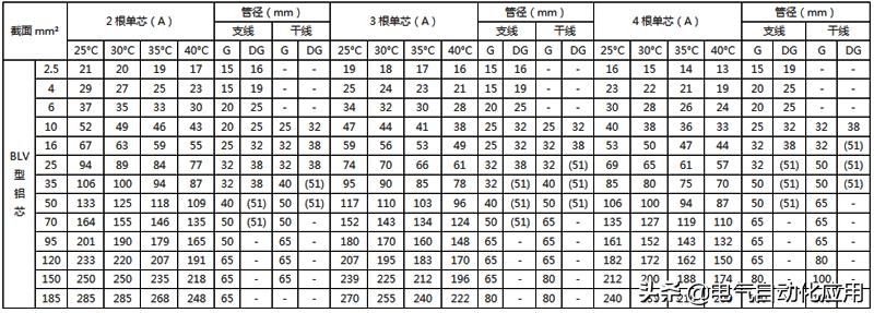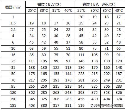 注2:BLV-105型铝芯耐热线的载流量可按表中的数据乘以0.78。