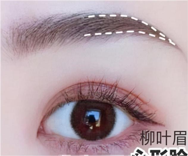 柳叶眉适合心形脸,没有明显的棱角,长度偏长,整体偏细,整体温柔上扬。