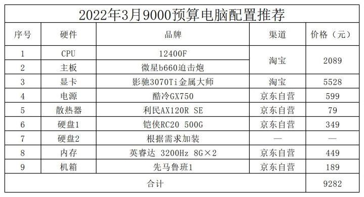 ps:如果预算不够,可以先满足处理器和显卡的需要,后续再考虑将机械换成固态