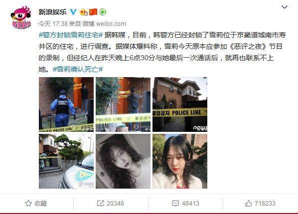 据官方媒体报道:原应今天参加《恶评之夜》节目录制的雪莉,在家中被发现死亡。