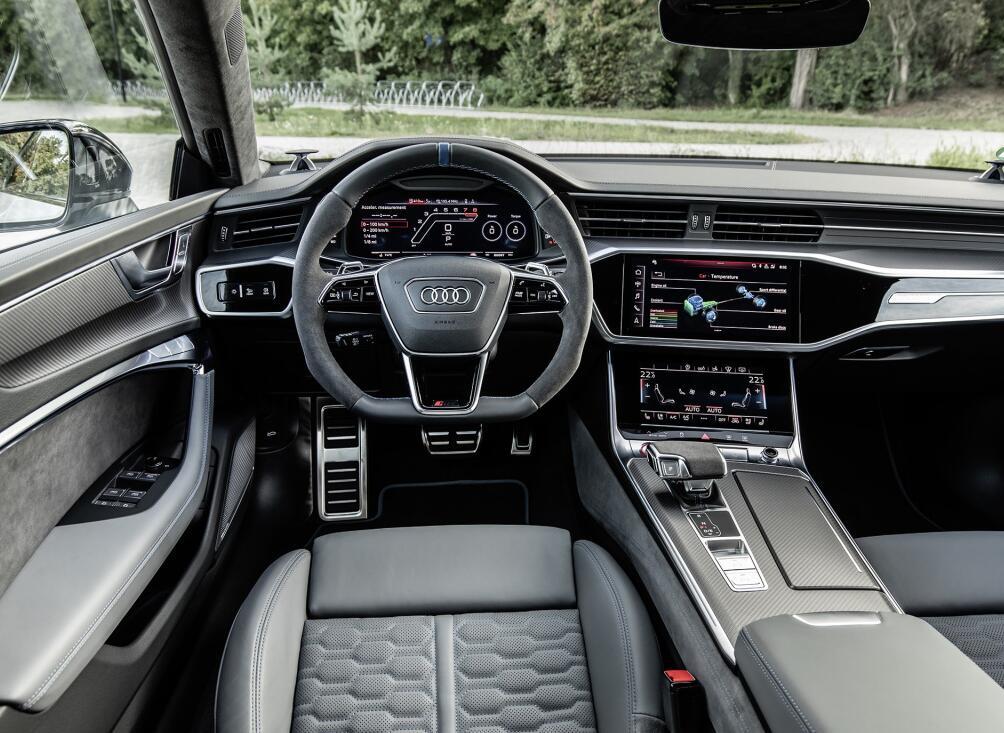 奥迪RS7作为奥迪RS系列最顶级的车型,它兼顾的是集跑车和轿跑车的双重身份,其主要的应用对象并不是单纯的赛道驾驶,所以舒适性一定是它的侧重点,在奥迪RS7的内饰当中,很多材质的选择就符合这样的标准,例如RS座椅的皮质是非常舒适的顶级真皮,而且座椅支持通风加热两种功能,同时整个内饰都大面积覆盖真皮材质。