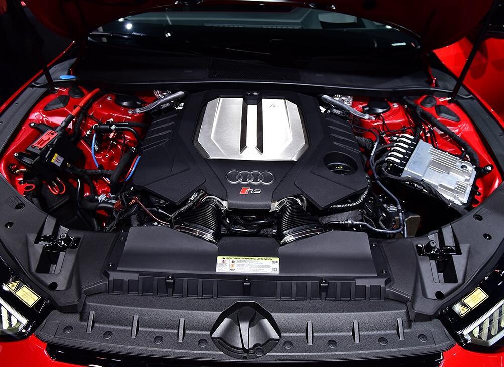 奥迪RS7的动力方面,除了发动机参数上的一些变化之外,最大的关于全新奥迪RS7的动力总成变化就是加入了奥迪的48V轻混系统,从目前来看,这套48伏轻混系统主要是为了提升燃油经济性,但是实际作用远不止于此,例如轻混系统可以实现40秒的蠕行,他的电动机可以提供十二千瓦的动力,能够支持他在拥堵的时候40秒的低速形式,同时可以实现BSG电机,发动机在22个公里每小时以下的随时自动启停,这也是很大的优势。这套动力系统是可以提升燃油经济性以外,还能够提供一定的舒适驾驶的体验。