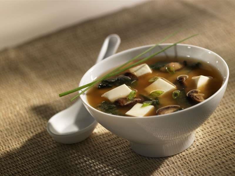 味噌汤几乎每餐都是配菜,几乎每道菜都是。 这是一种用味噌酱(发酵大豆)和大石(清汤)制成的汤。 在这种基础汤里面,你会发现豆腐,洋葱wakane海藻,有时还有甜马铃薯,胡萝卜和萝卜等蔬菜。 它从未作为主菜。 它总是配有一碗米饭和一两个菜。