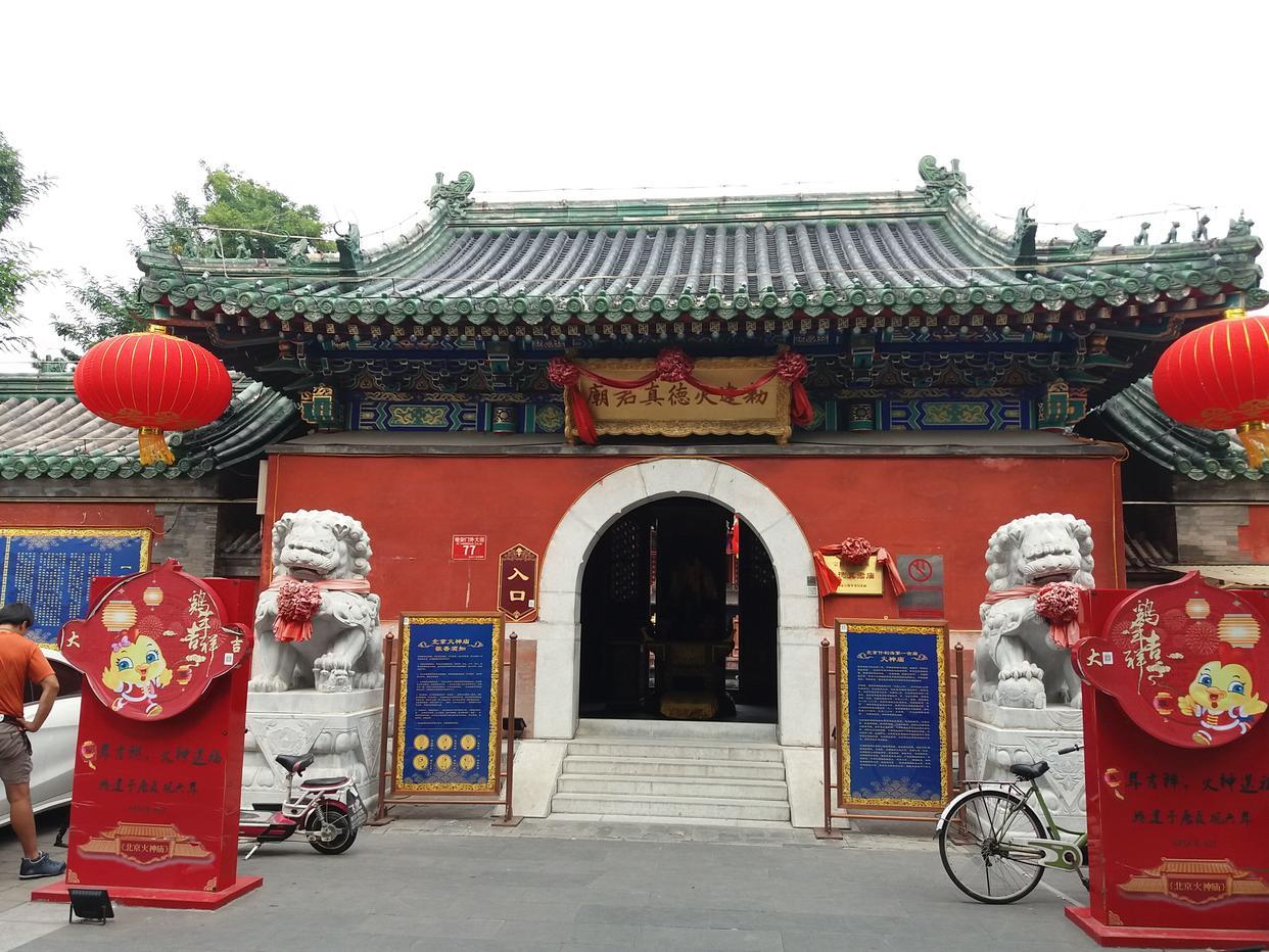 火德真君庙,俗称“火神庙”,是北京市级文物保护单位,也是中国道教协会的直属宫观。这座庙宇坐北朝南,山门向东,给人一种庄严肃穆的感觉。庙内的殿宇多使用琉璃瓦覆顶,除了火祖殿两侧各两间及斗姥阁两侧各五间的配房为灰瓦外,清乾隆时期又将山门及万岁景命阁增为黄瓦。庙内主要建筑布列在南北中轴线上,给人一种井然有序的感觉。自南而北,首先是灵官殿,又称隆恩殿,殿内供奉着道教护法神王灵官;接着是荧惑宝殿,供奉着火德荧惑星君;再往北是斗姥阁和万岁景命阁,其中万岁景命阁俗称玉皇阁。
