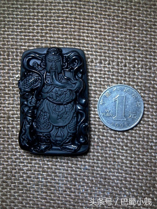 一:乌金黑曜石,名字很好听,说白了也就是纯黑色没有彩虹眼的黑曜石,产量最大最便宜,常见于磨砂款的吊坠和手链,还有大一点的机雕摆件。下图就是这种料子。市场上这种料子几乎都是机雕压模,批量生产,价格最便宜。
