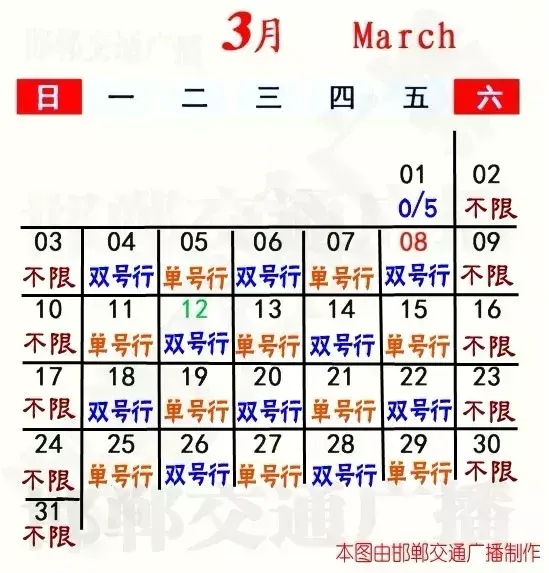 2月28日,邯郸市重污染天气应急指挥部发布通知,3月4日至3月31日,在邯郸市主城区实施机动车单双号限行措施,单双号限行期间城市公交免费,邯郸主城区的单双号限行从3月4号也就是明天就开始,大家互相提醒。