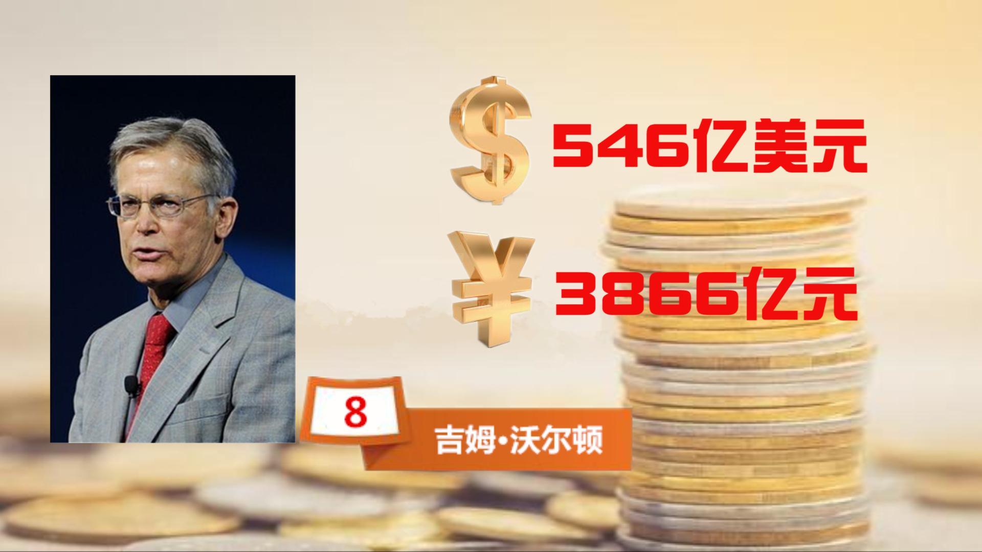 第8名:美国,吉姆·沃尔顿,资产为546亿美元,折合人民币3866亿。