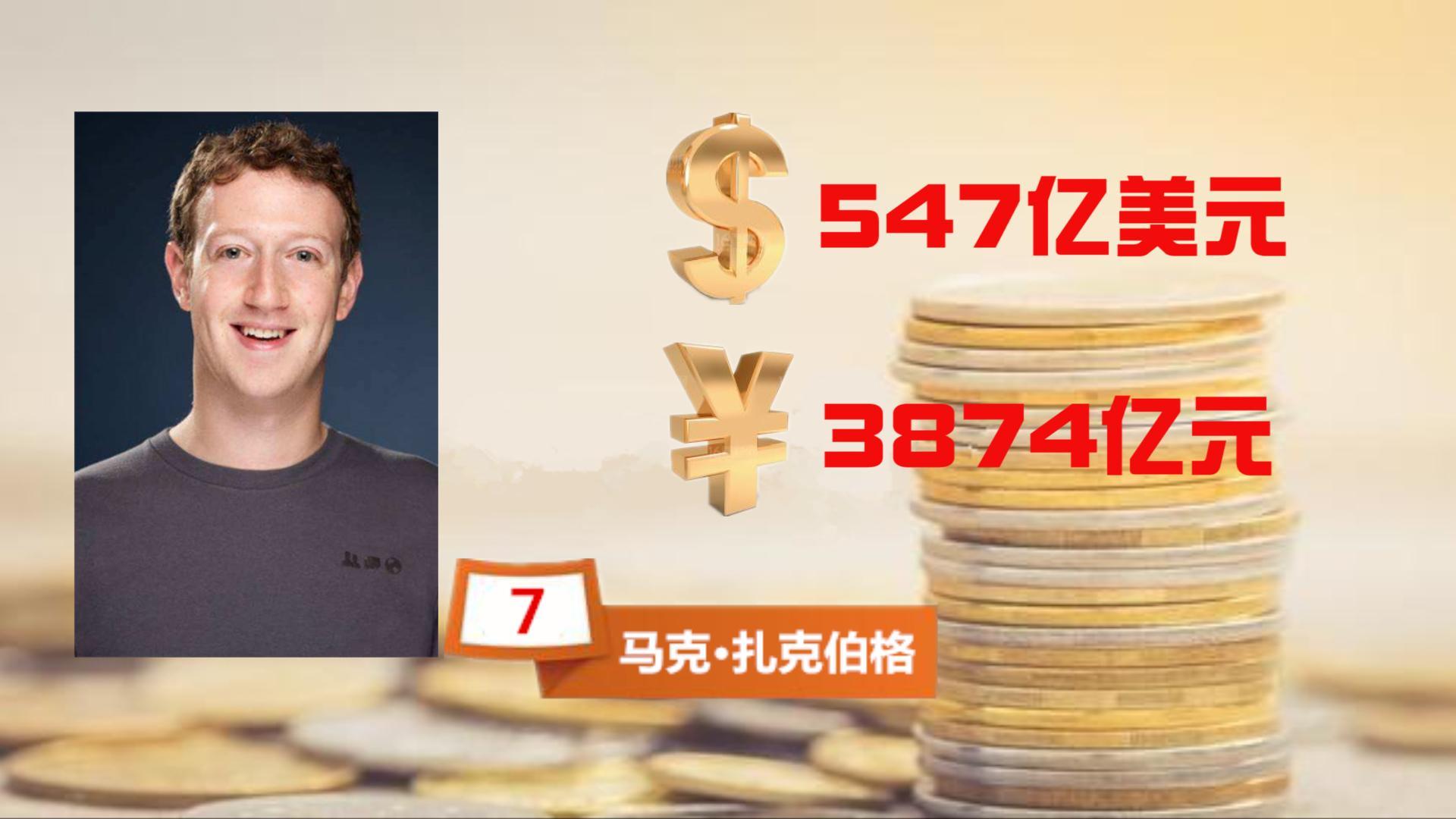 第7名:美国,马克·扎克伯格,资产为547亿美元,折合人民币3874亿。