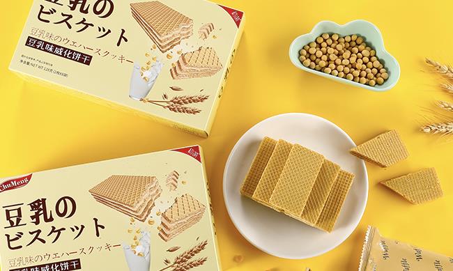 比如这款日本风味豆乳威化饼干,是日本人下午茶的热门零食,外脆内酥,最大的特点是吃到最后会有纯正的豆乳香在嘴里徘徊。