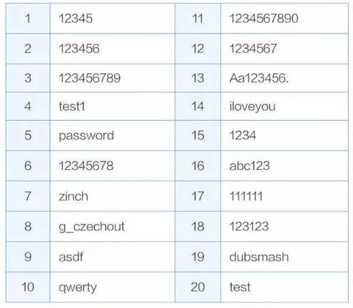 外媒公布最常用密码Top20,用「12345」被破解2800万次