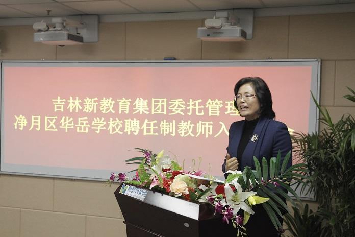 会议开始吉林新教育集团董事长李桢,为新入职的54位教师诉说自己的感受,李桢校长说了一句话送给了新入职的教师们“选择改变命运,勤奋成就未来”小编在现场很受感动,她也是小编特别佩服的一个人,相信在李校长的带领下,华岳的未来会更辉煌。