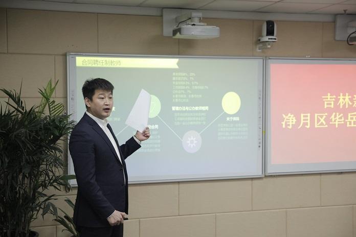 紧接着综合管理中心主任宋亮,为新入职教师们讲解,聘任制合同教师的问题与教师队伍管理。听说宋主任为了这个演讲,连续几天奔波于各种政府机关了解相关政策,为的就是想让刚刚入职的老师们可以感受到像家一样的温暖。