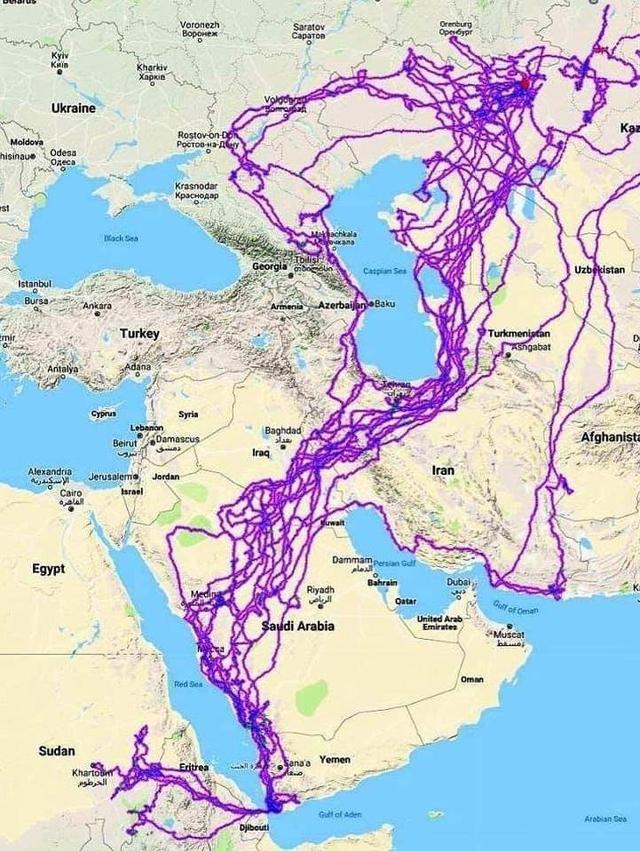 7、动物公益组织给一只成年雄鹰身上做定位,为了研究它的自然迁徙路线,以下就是其十年之间所有的飞行轨迹图。(这算不算周游列国呢?)