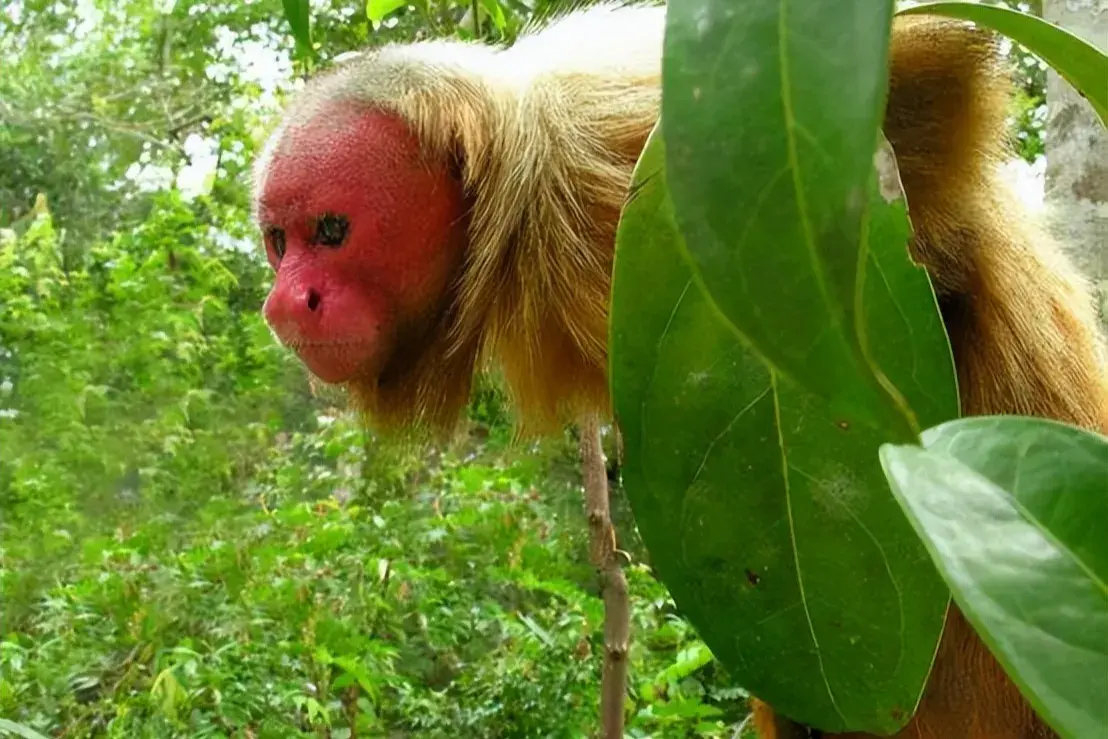 16、生活在南美洲热带雨林之中的红面秃脸猴,它们的长相非常独特,整张脸庞被红色所覆盖,而且没有眉毛、胡子之类的毛发,第一次看见,真的会被吓一跳。