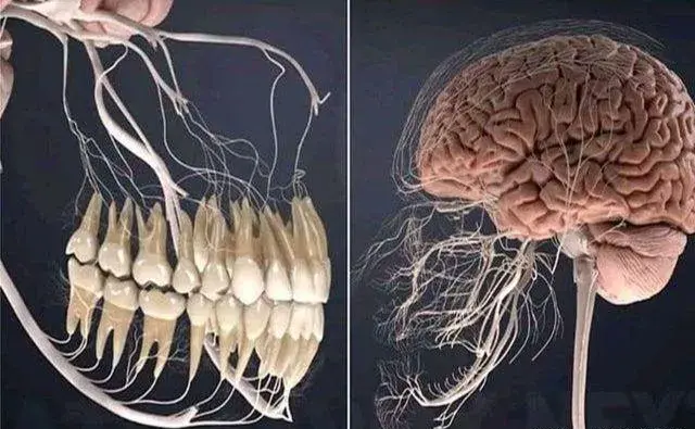 17、这是一张人体牙神经跟大脑神经连接图;这样看是不是就能很直观的理解,为什么人牙疼起来,真的是“要命的”。