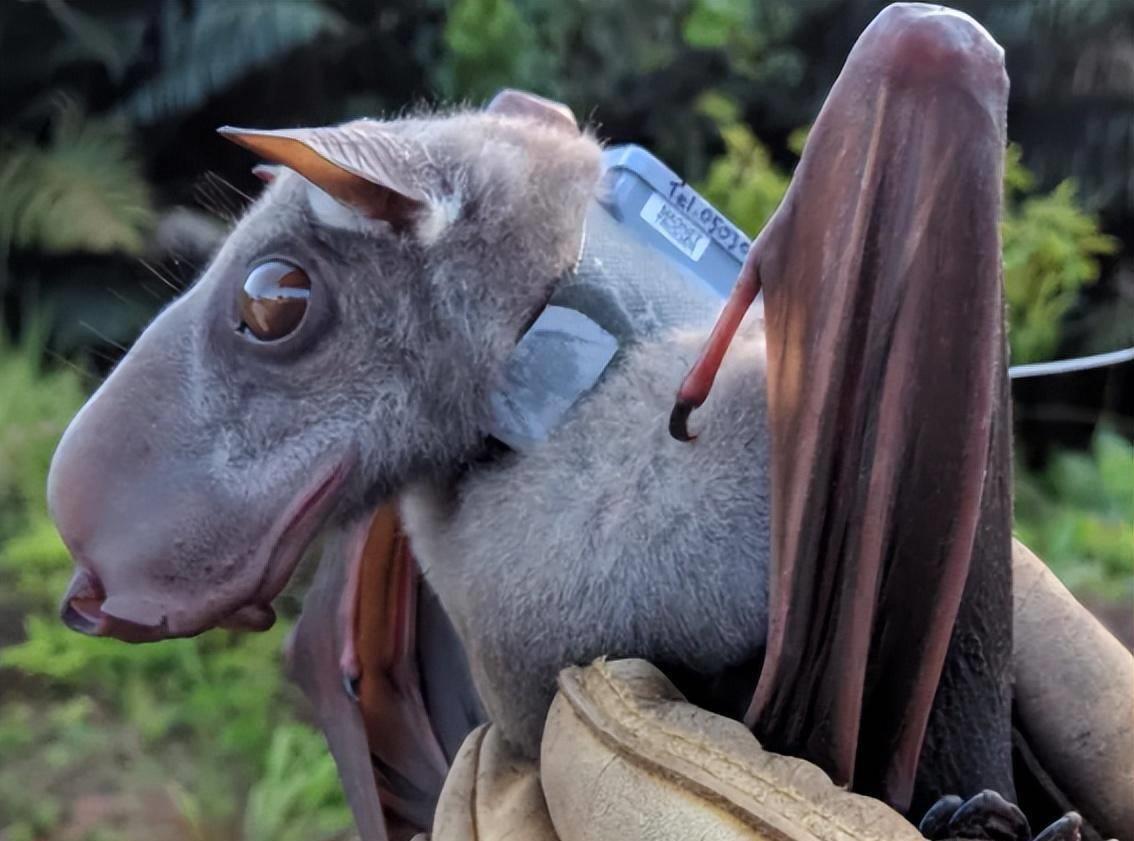 6、一头被人类照顾着的锤头果蝠,它们体型较大,饮食主要以水果为食;所以大家不要被外表给吓到了,它们不好吸血。