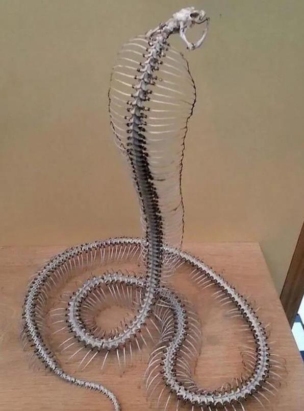 28、一条巨型眼镜王蛇的完整骨架,当它遇到危险的时候,会主动张开腹部骨头,尽可能的让自己体型看起来更大,更具威慑力。