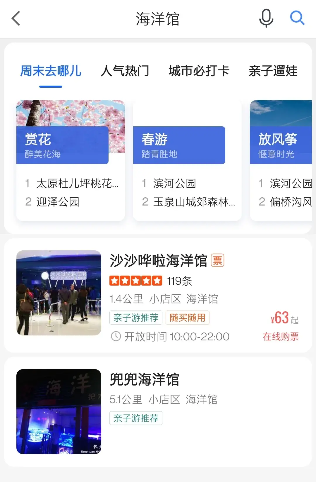 在手机地图上搜索“海洋馆”,你就只能搜到一个沙沙哗啦海洋馆和一个兜兜海洋馆。
