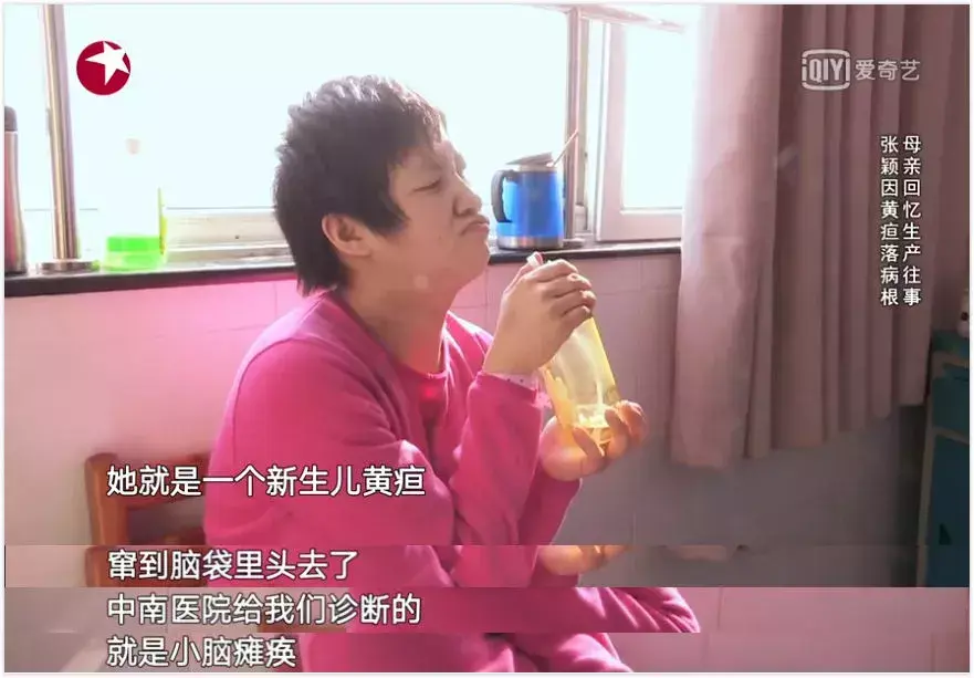 时间回溯至23年前,张颖刚出生还是个健康漂亮的女娃,但由于新生儿黄疸被误诊,具有神经毒性的胆红素在体内积聚过多,最后进入大脑,破坏了中枢神经,从而造成脑部损伤,继而发展为脑瘫,并伴随行动异常和语言障碍等,也就是我们常说的“核黄疸”。