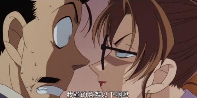 当还有在剧场版《第十四个目标》一话的最后彩蛋里,也直接交代了当初毛利夫妇分开的原因就是因为小五郎嫌弃英理所作的食物不好吃(当然这个只是小五郎表面的借口而已,他只是心态英理)。