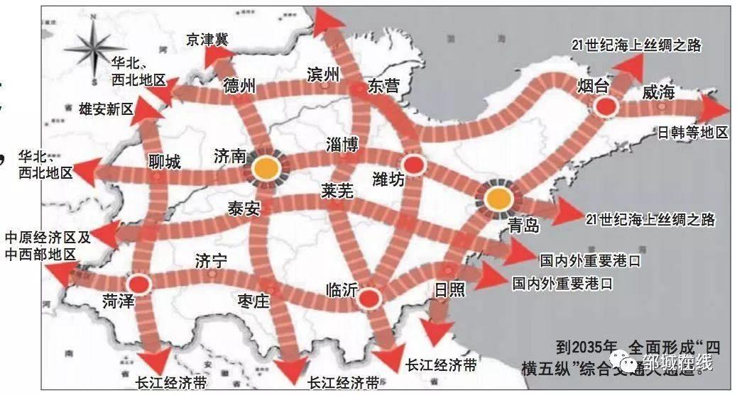 据介绍,到2035年,山东省高速铁路路网总规模将达5700公里,高铁网络覆盖县域范围达到93%以上,高铁通道进出口增加到15个,时速350公里高铁占比提高到80%以上,全面构建“四横六纵”现代化高铁网络,形成覆盖全省的“省会环、半岛环、省际环”格局。