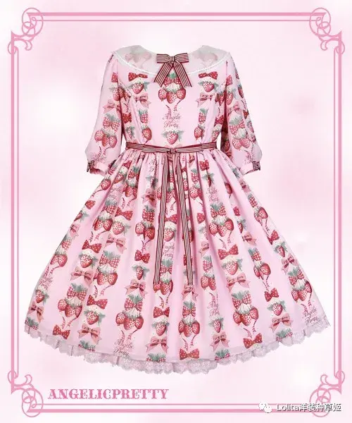 简称甜系。主要以粉红,粉蓝,白色还有一些比较鲜艳的颜色为主。印花中大多是草莓,樱桃,猫猫,泰迪熊等小动物之类的可爱元素,也会大量在裙子上使用蕾丝。甜系会让人有一种可爱甜美又烂漫纯真的doll感,所以也是很多姑娘入坑的首选风格。比较知名的Babydoll,摘草莓,小白云就是甜系的代表作品。