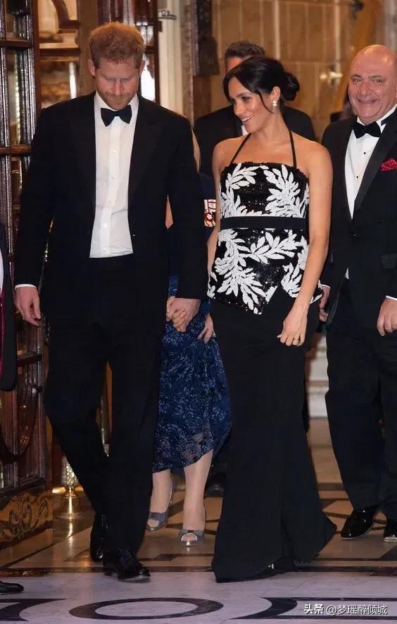英国王室是很忌讳黑色着装的,但是梅根王妃似乎就是那个最特立独行的存在,经常在公众场合看她穿着黑色着装,在大冬天的时候出席晚宴,梅根王妃居然选择了穿吊带裙,不得不说真的很美丽“冻”人。