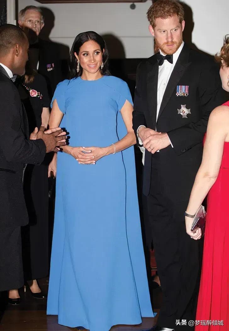 梅根第一次出席汤家宫廷晚宴的时候,身着一袭蓝衣,佩戴了英国王室奢华的钻石耳环,站在哈里王子身边,还是挺有王妃的气场。