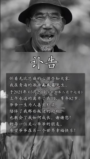 大半年之后,82岁的尚成苍老爷爷去了天堂和家人“团聚”。