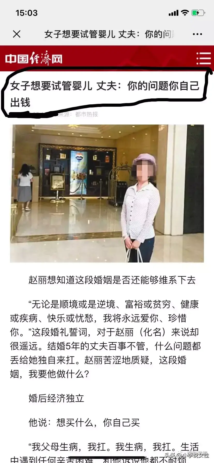 由于费用不低,一共要十多万,赵丽提出希望和老公一起攒钱,没想到老公竟然一口拒绝,并且冷漠的说,生不出孩子是赵丽的事情,这个钱要她自己出。
