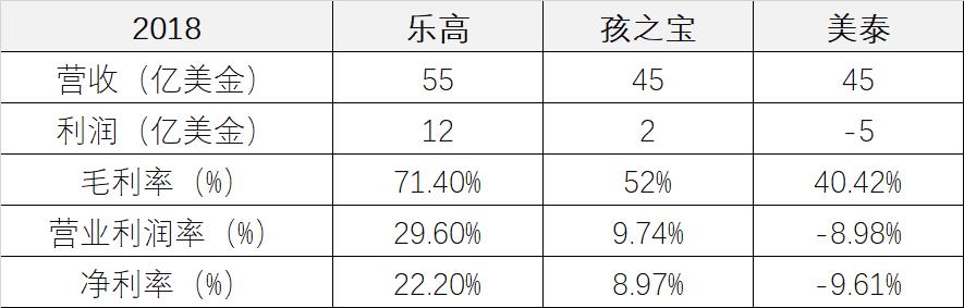 乐高在毛利率、营业利润率和利润率等指标远超其他同行业成熟企业,品牌价值在玩具行业里属于独一档的存在。
