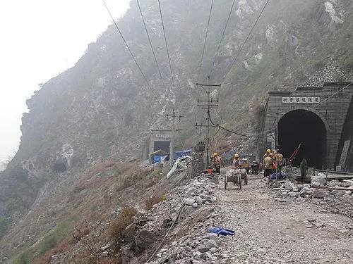 废弃的奶奶包隧道昆明端(远处)及新建的利子依达隧道(近处)