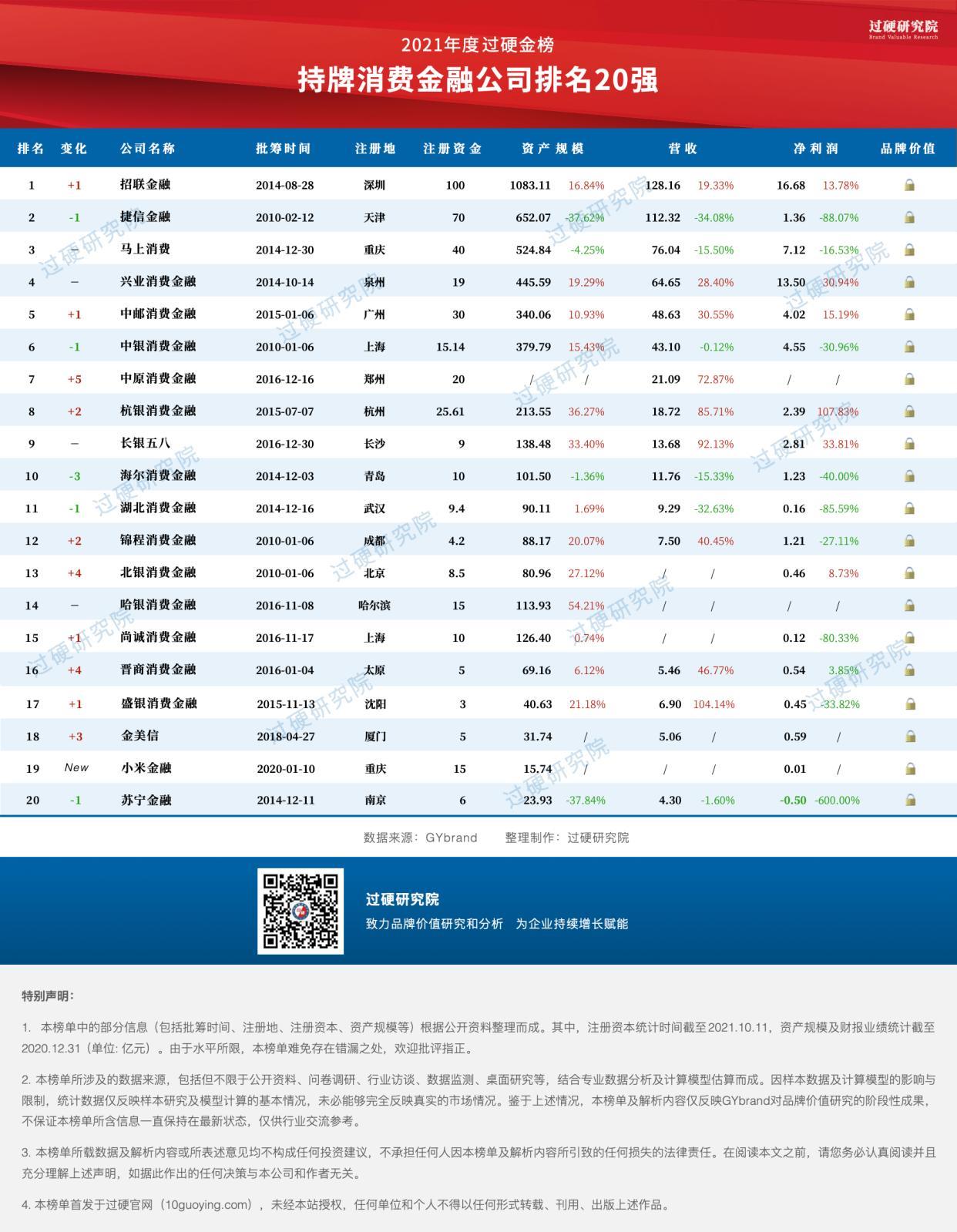 2021全国持牌消费金融公司排名 最新消金公司20强名单一览