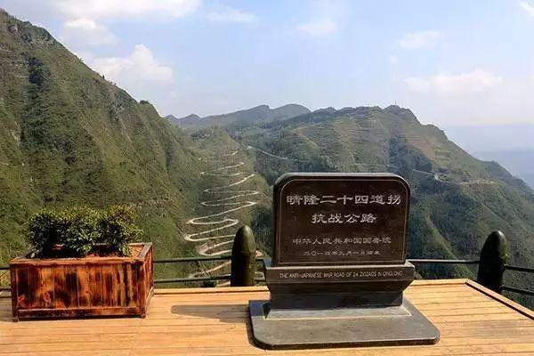 二十四道拐抗战公路,为第六批全国重点文物保护单位。位于贵州省晴隆县城西南1公里处,从上至下依山势呈弯道盘旋,计有24个弧形拐弯,全长4公里,蜿蜒于高达1799米的晴隆山西南坡,是320国道中的一段,也正是世界著名的“史迪威公路”中极其重要的一段。