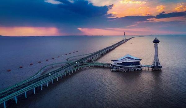 杭州湾跨海大桥位于中国浙江省杭州湾之上,北起嘉兴市海盐郑家埭村的海盐枢纽,上跨杭州湾海域,南至宁波市慈溪水路湾的庵东枢纽立交;海上平台“海天一洲”位于杭州湾大桥中部,南航道以南1.7千米处;